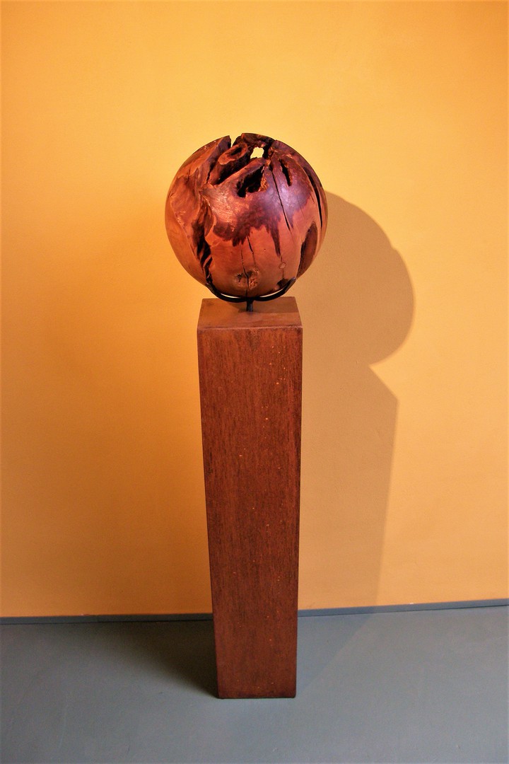 Wurzelholzkugel Zwetschge 30cm Objektträger Stahl Rost Klarlack